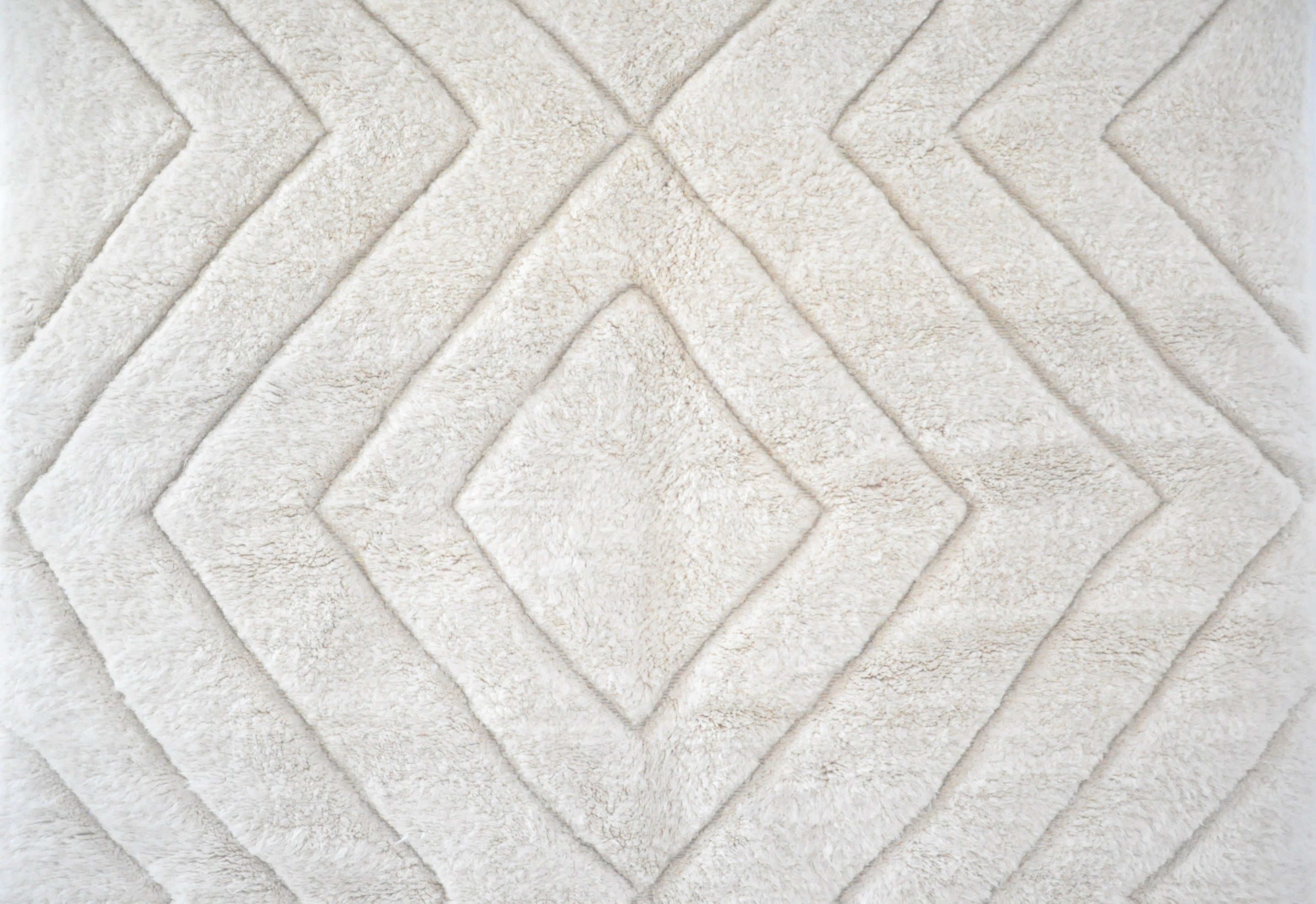 Fluffy-woven rug Biha in 'Sunken Symmetry', thick weave with sunken lines in natural white