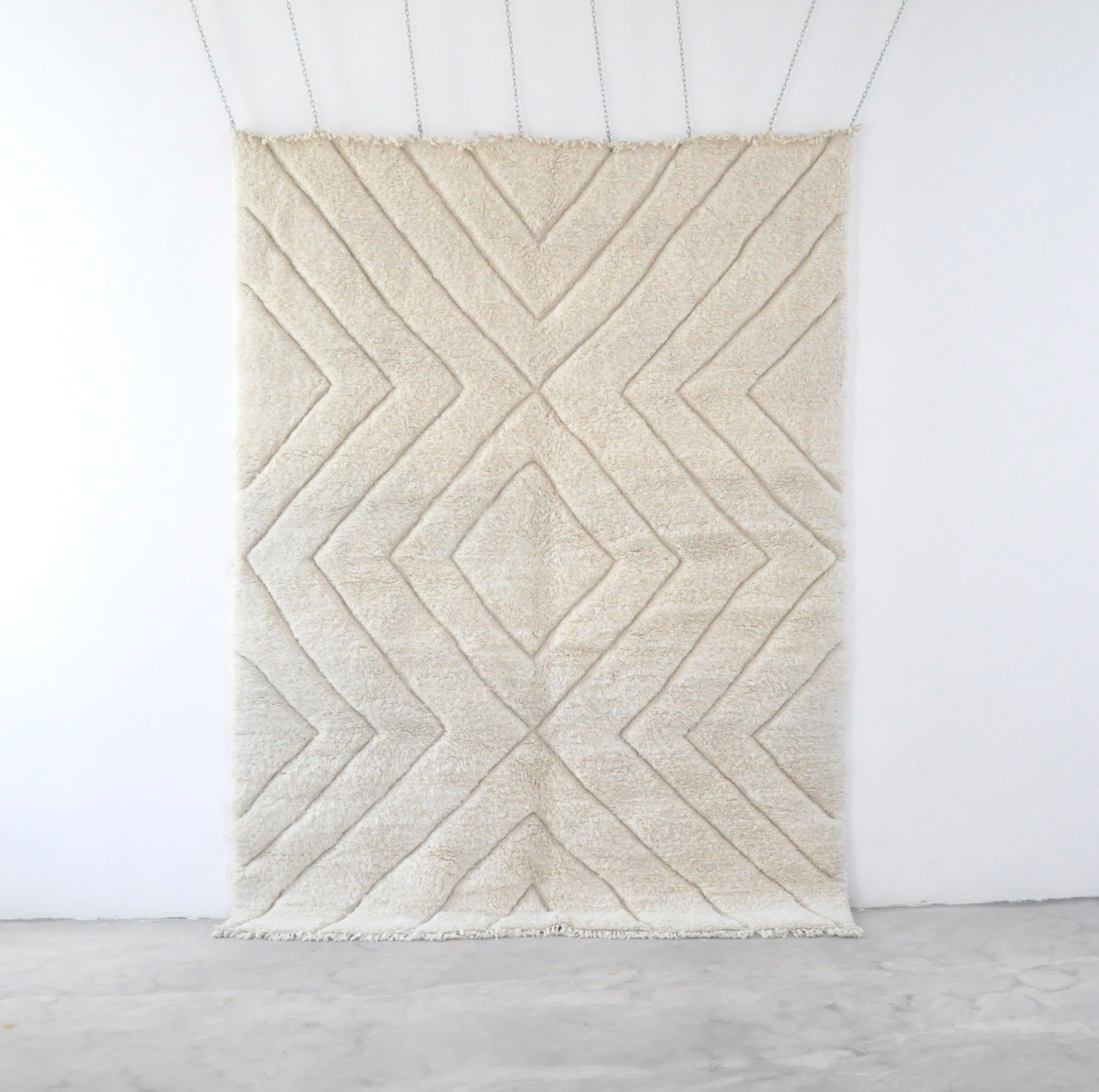 This rug is part of our Beni Ouarain collection. All rugs that are part of our luxury collection have been woven extra tightly and have been pre-washed by hand with a special technique, which gives it a unique and beautiful furry look&feel. This method makes these rugs extra soft, comfortable and long lasting.