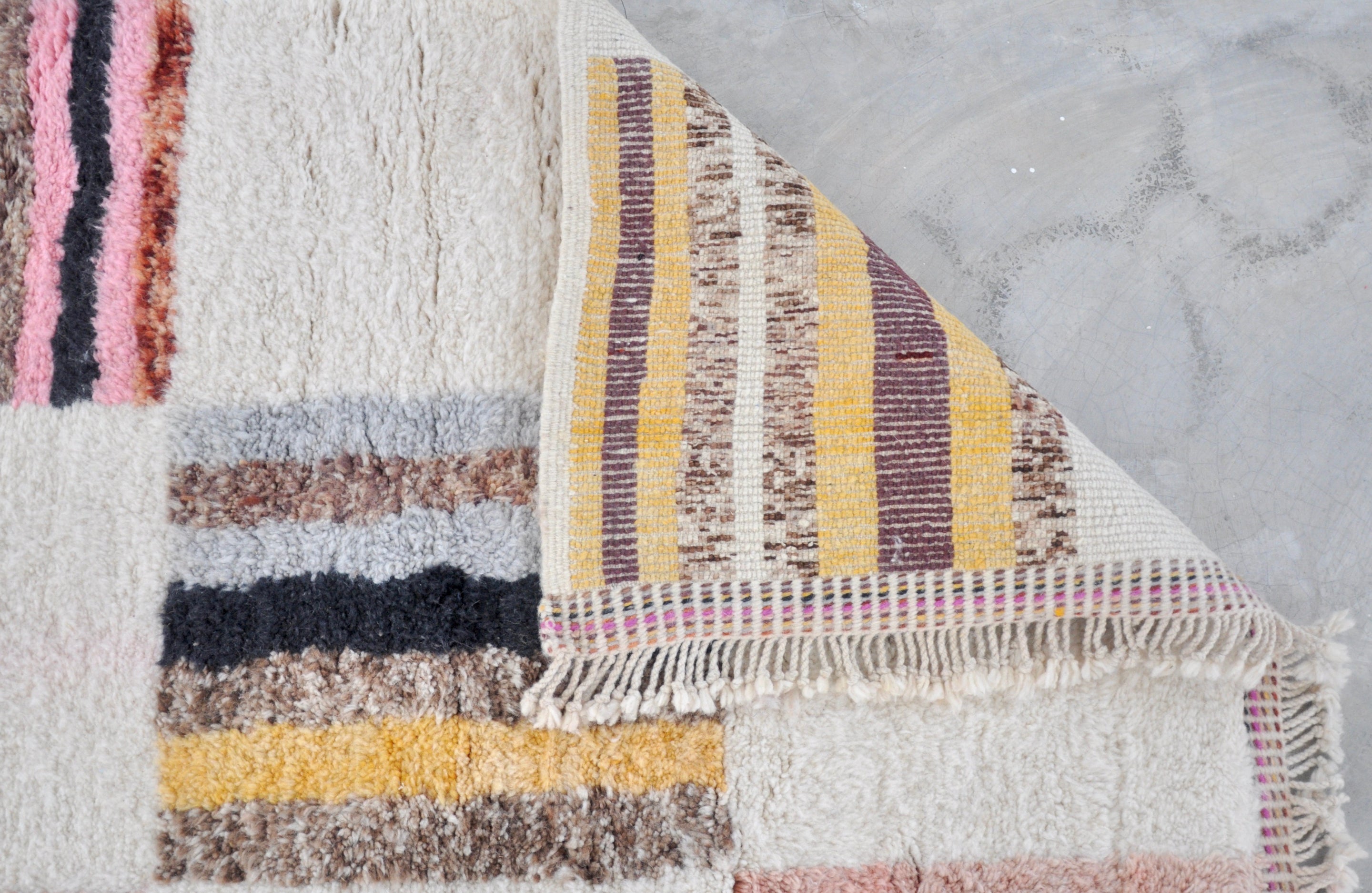 This special design rug is part of our luxury Azilal like collection. All rugs that are part of our luxury collection have been woven extra tightly and have been pre-washed by hand with a special technique, which gives it a unique and beautiful furry look&feel. This method makes these rugs extra soft, comfortable and long lasting.