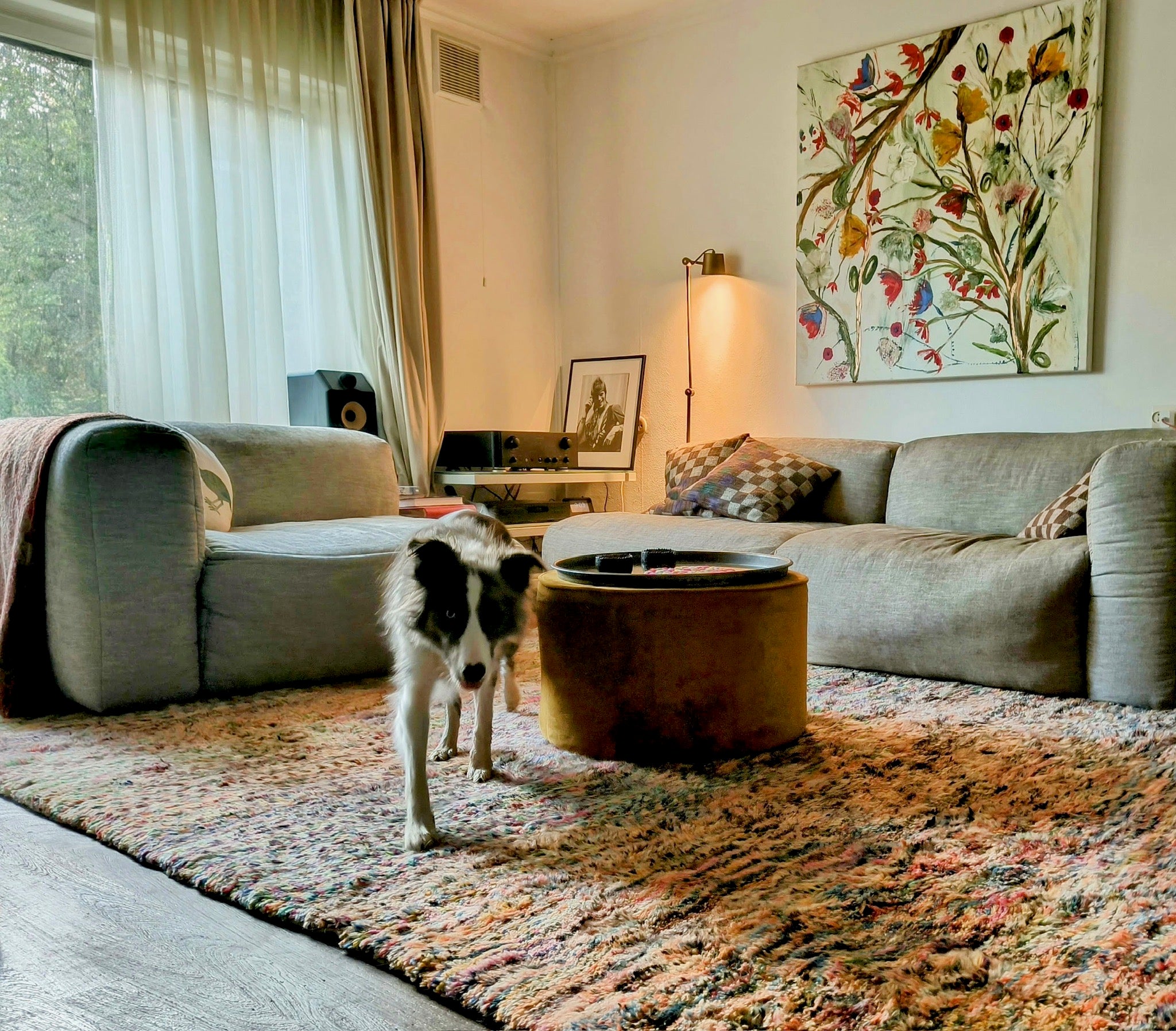 This rug is part of our artistic Beni Ouarain collection. All rugs that are part of our luxury collection have been woven extra tightly and have been pre-washed by hand with a special technique, which gives it a unique and beautiful furry look&feel. This method makes these rugs extra soft, comfortable and long lasting.
