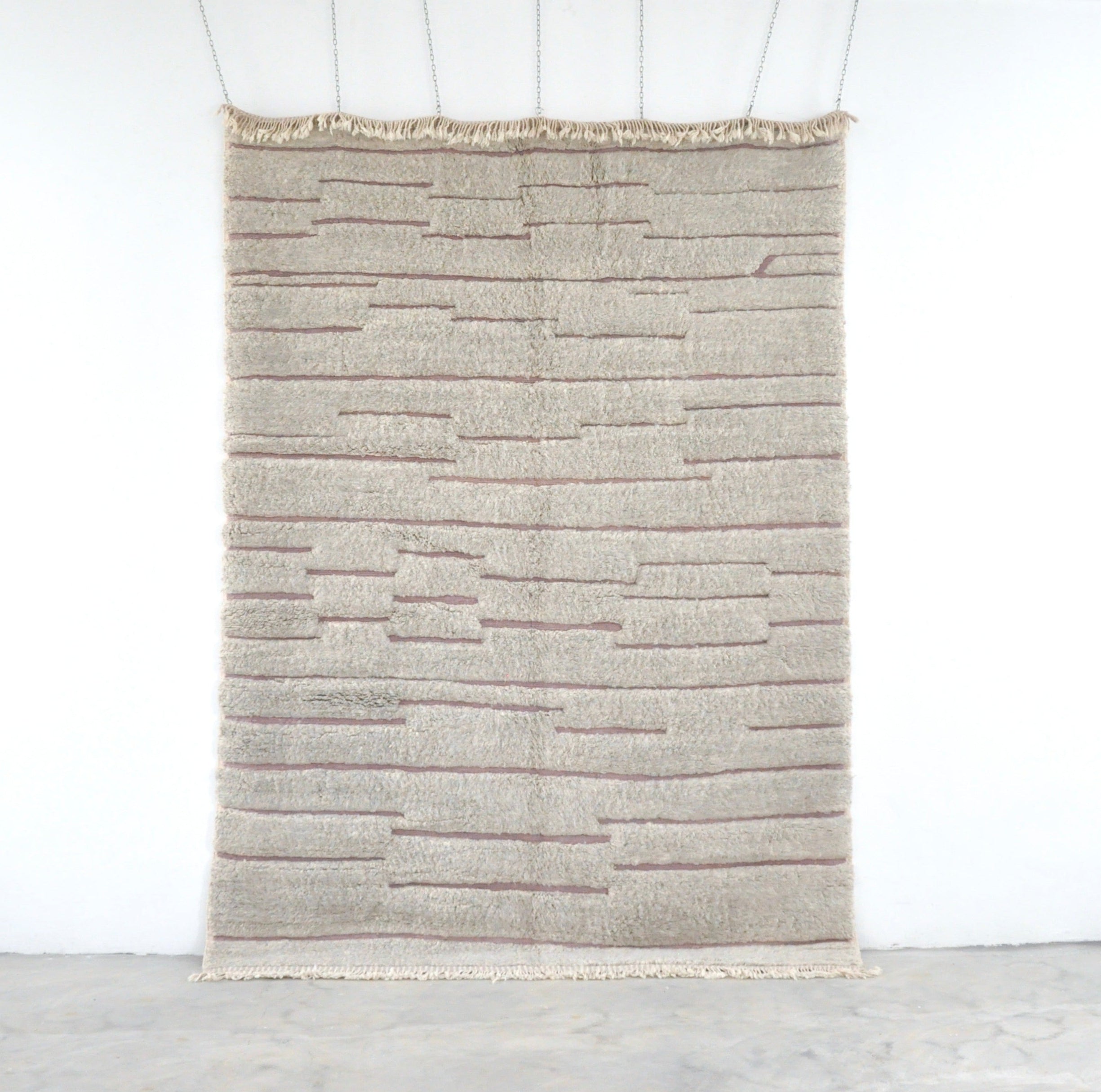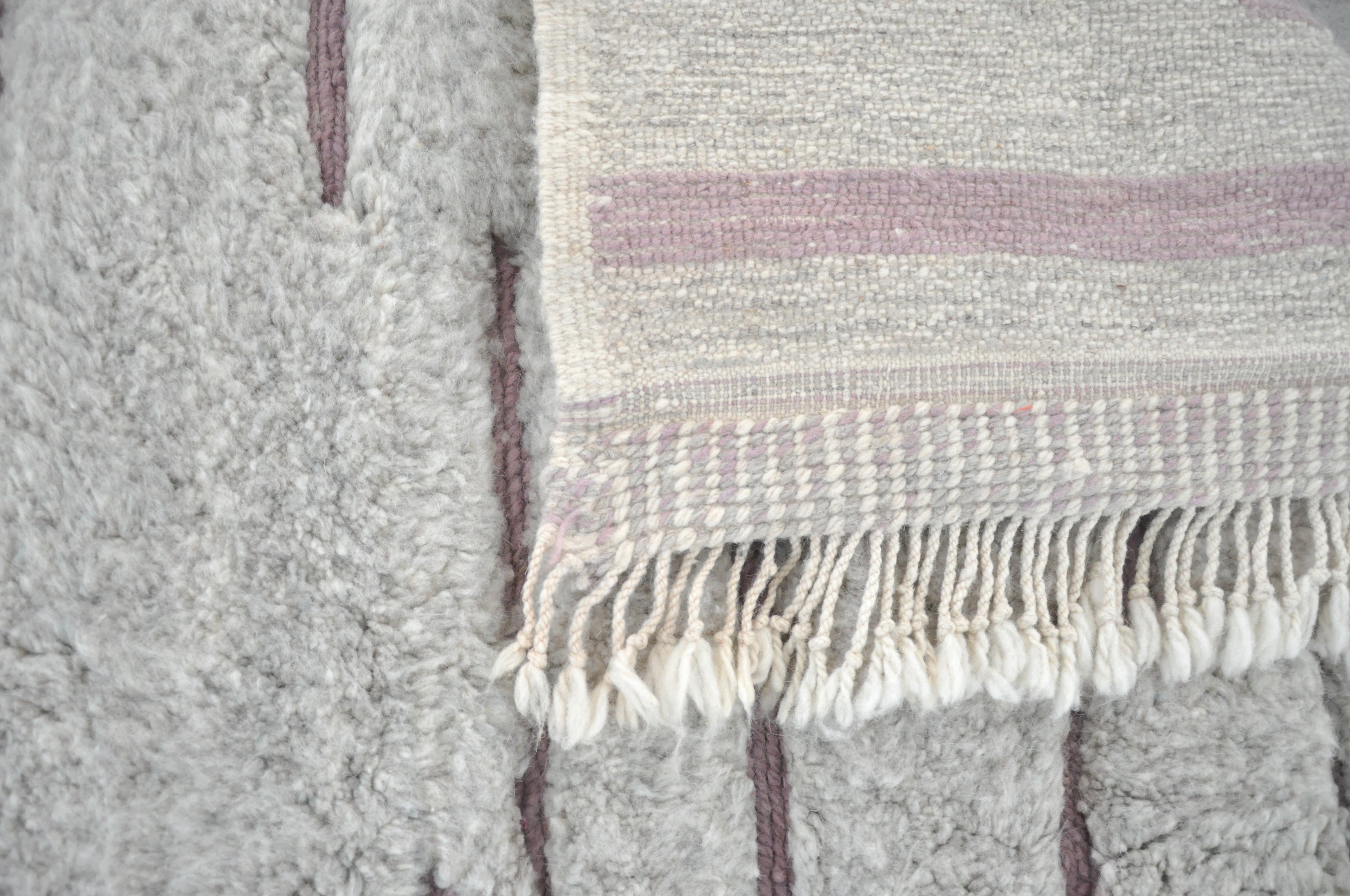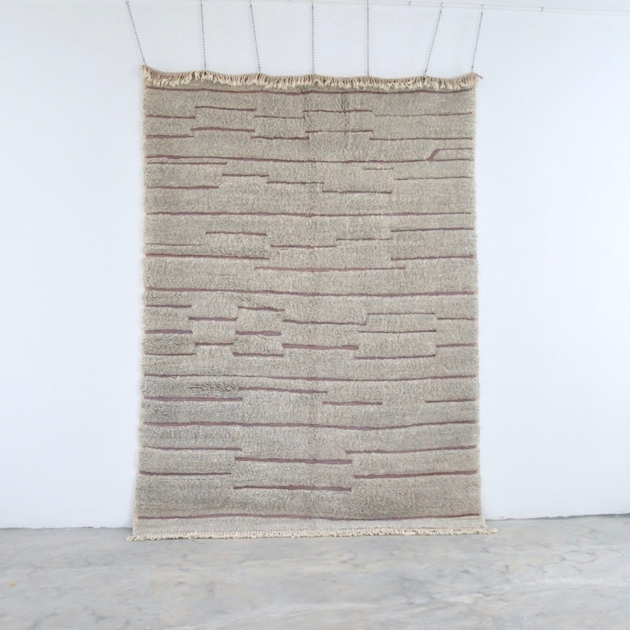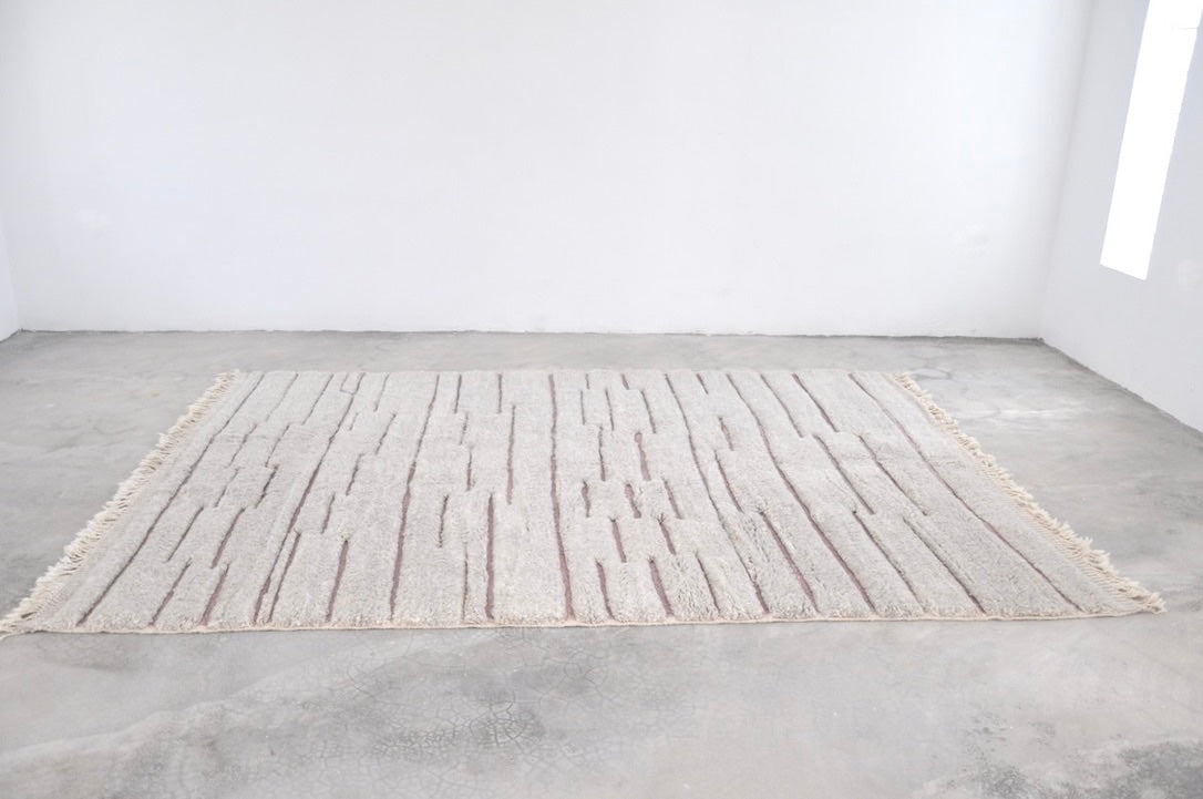 This rug is 100% wool, Beni Ouarain design, thick and heavy, and pre-washed, with a heavy labor special technic with the hand that gives it a very special furry look and feel.